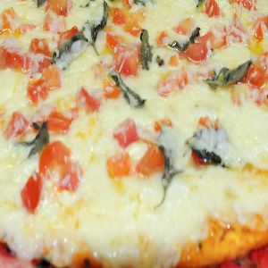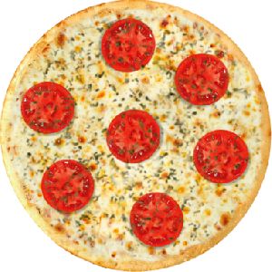 manjericão fresco, mussarela, oregano, parmesao, tomate