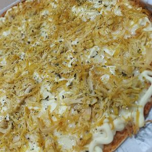 catupiry, frango desfiado, mussarela, oregano